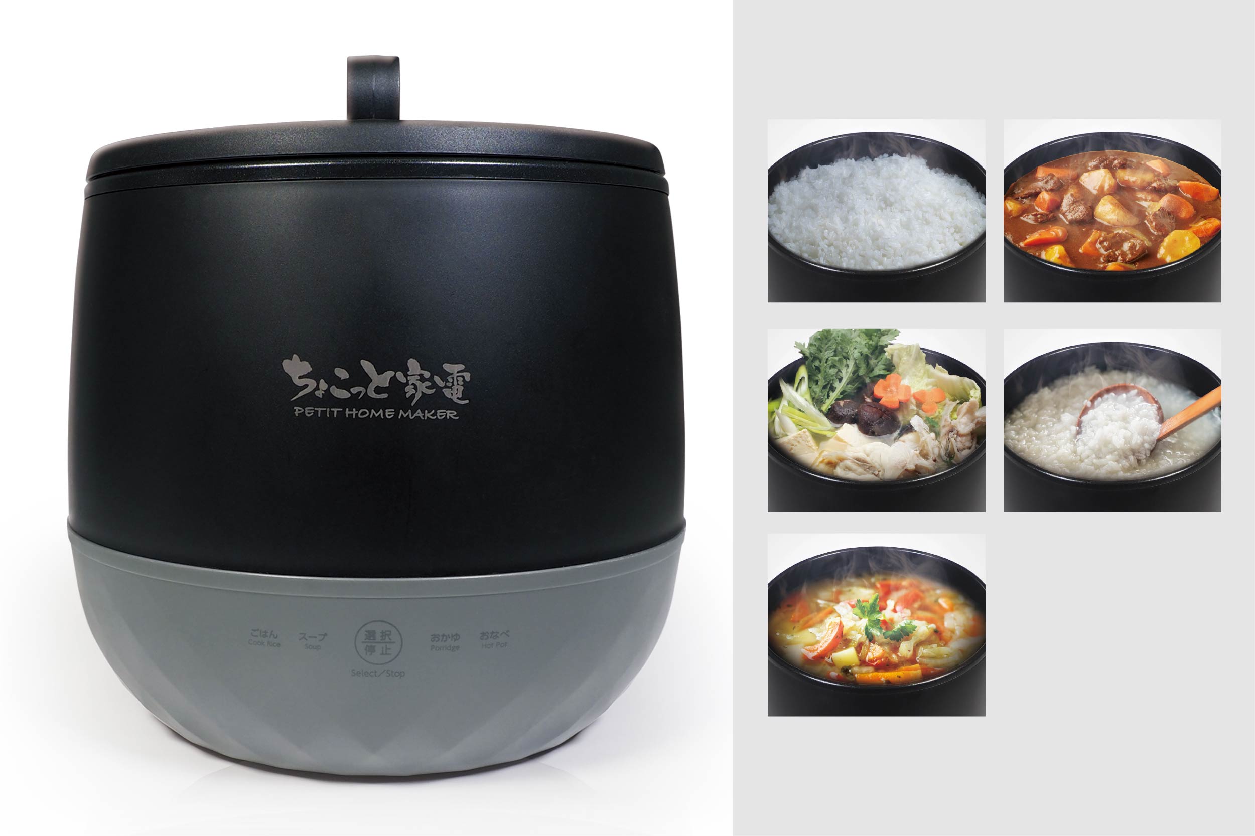 ご飯・スープ・お鍋がこれ1台!コンパクトなのに多機能。少人数世帯や一人暮らしにぴったりな、使い勝手の良い2合炊きマルチ炊飯器です。キッチンに置きやすい省スペース設計で、毎日の食事作りを手軽にサポートします。
