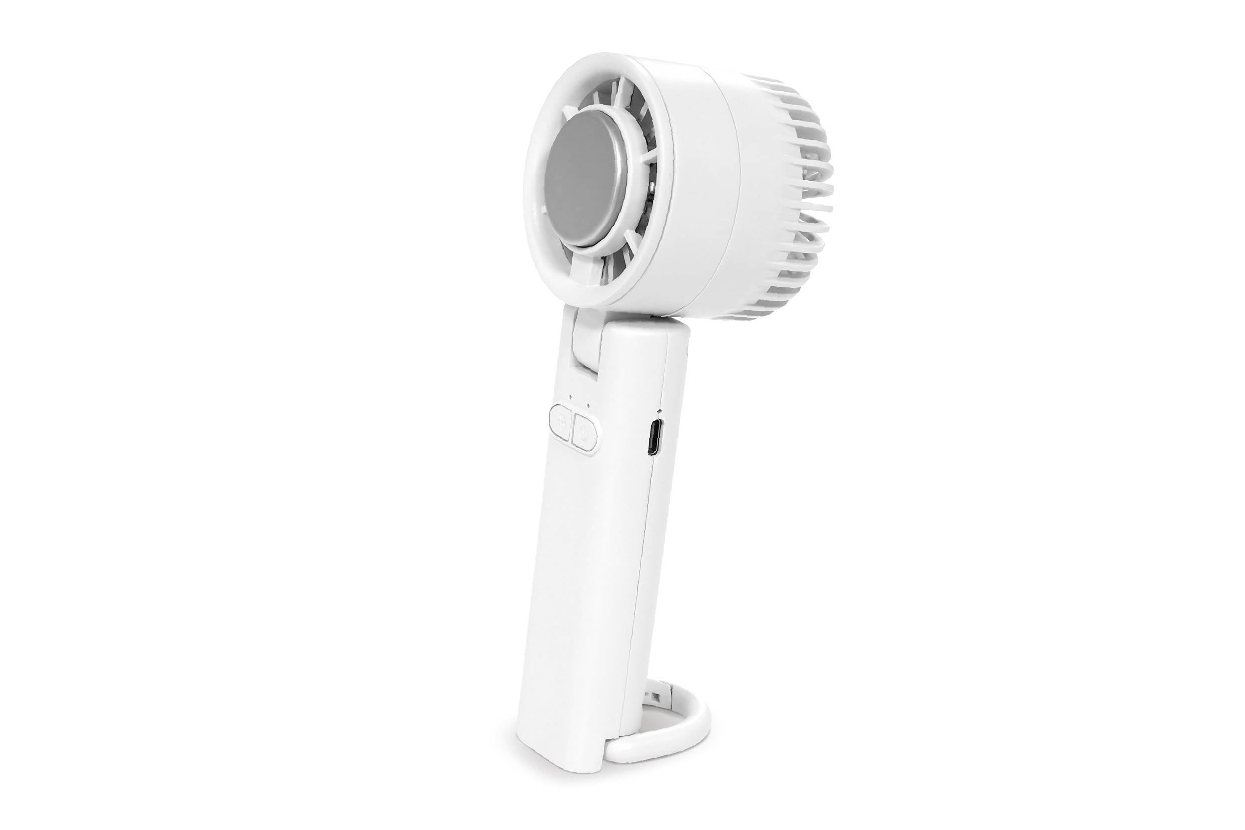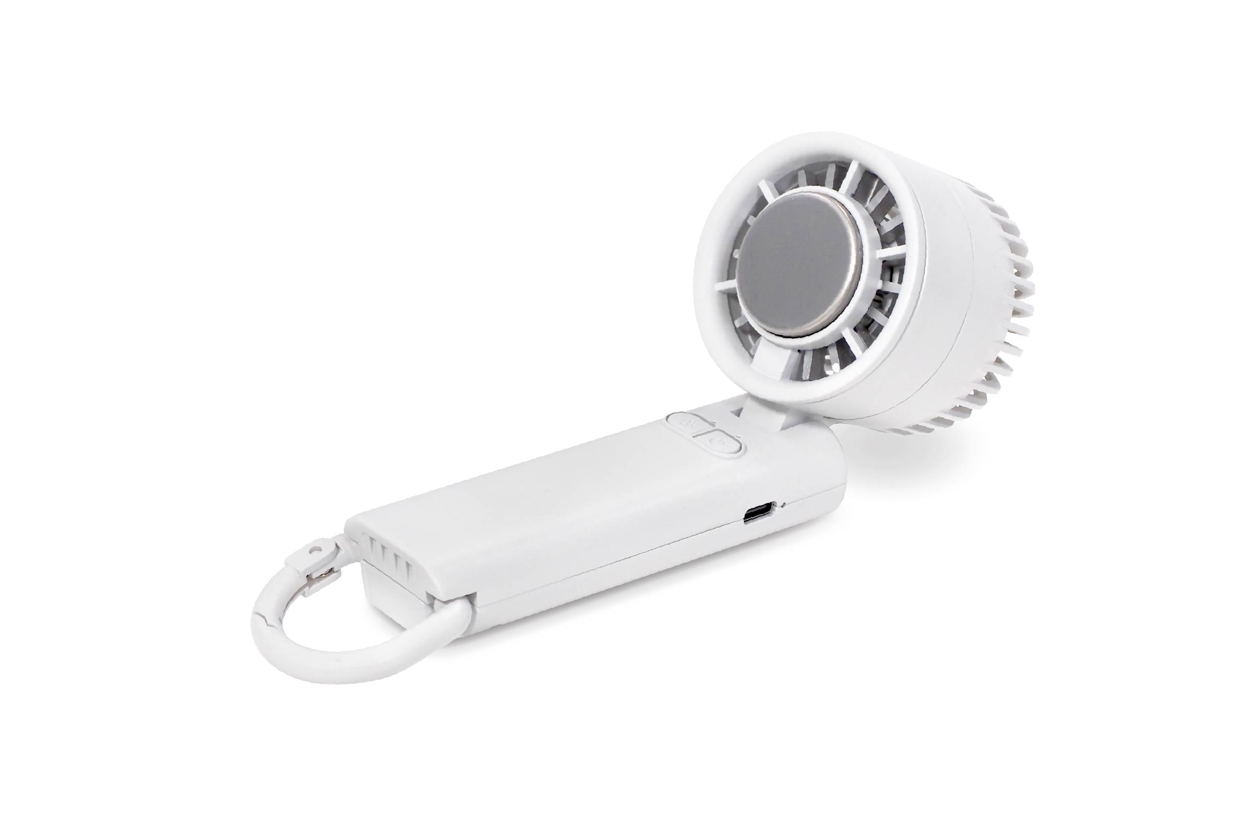 持ち運びラクラク!3WAYで使えるコンパクトファン♪USB充電式で繰り返し使えるハンディ扇風機。カラビナ付きでバッグに掛けたり、卓上でも使えて外出先でも大活躍!シンプルで清潔感のあるホワイトカラーがどんなシーンにもなじむ。