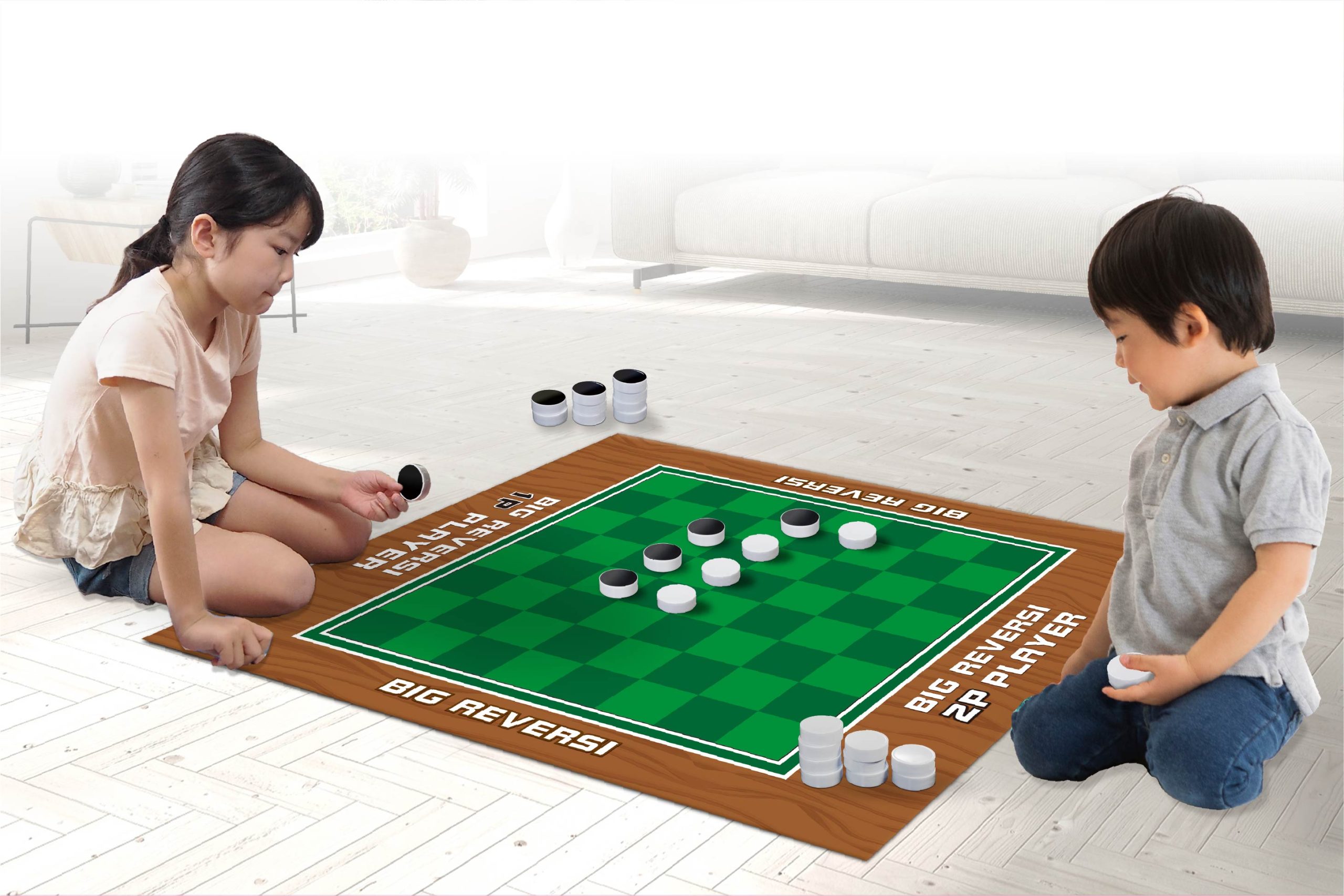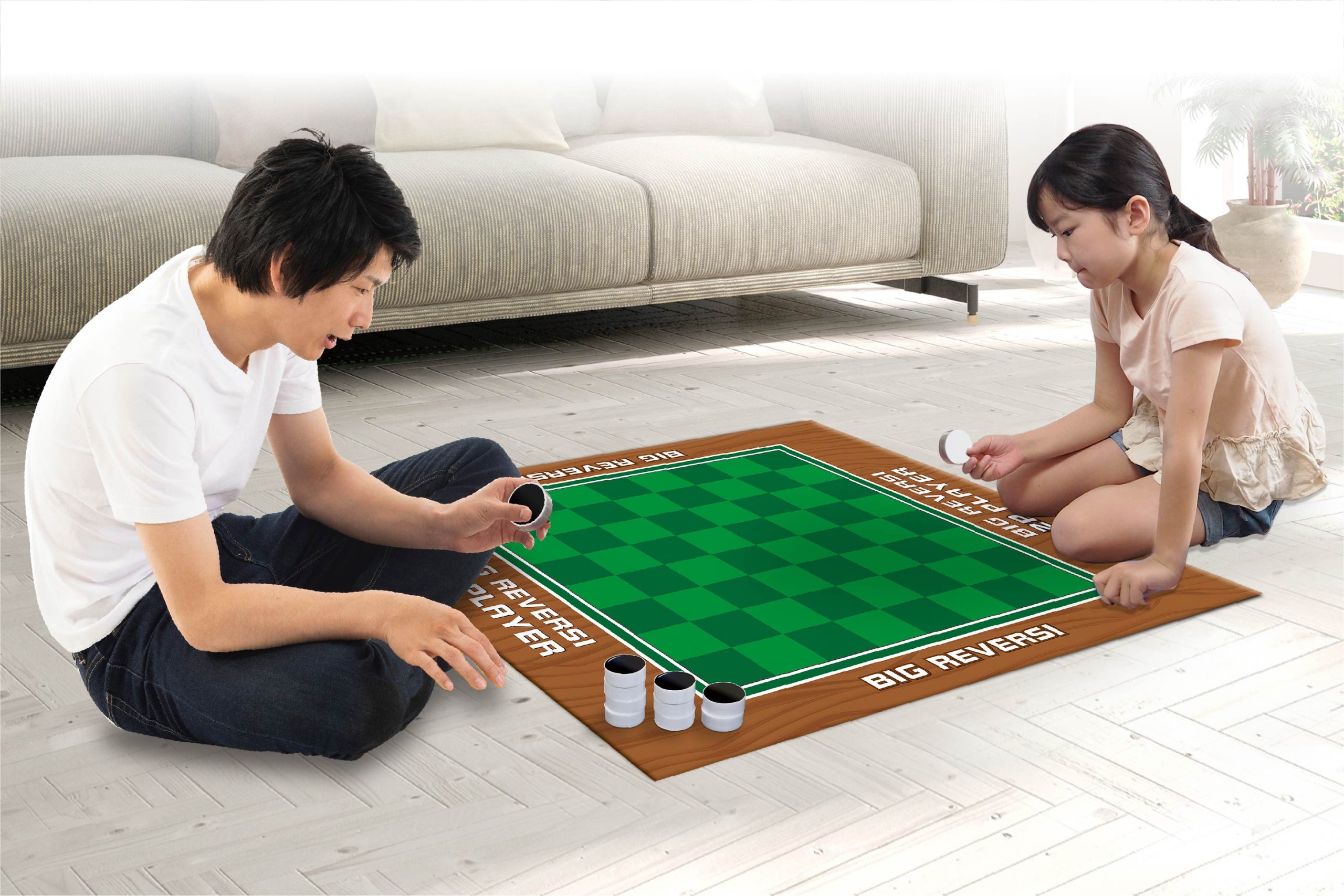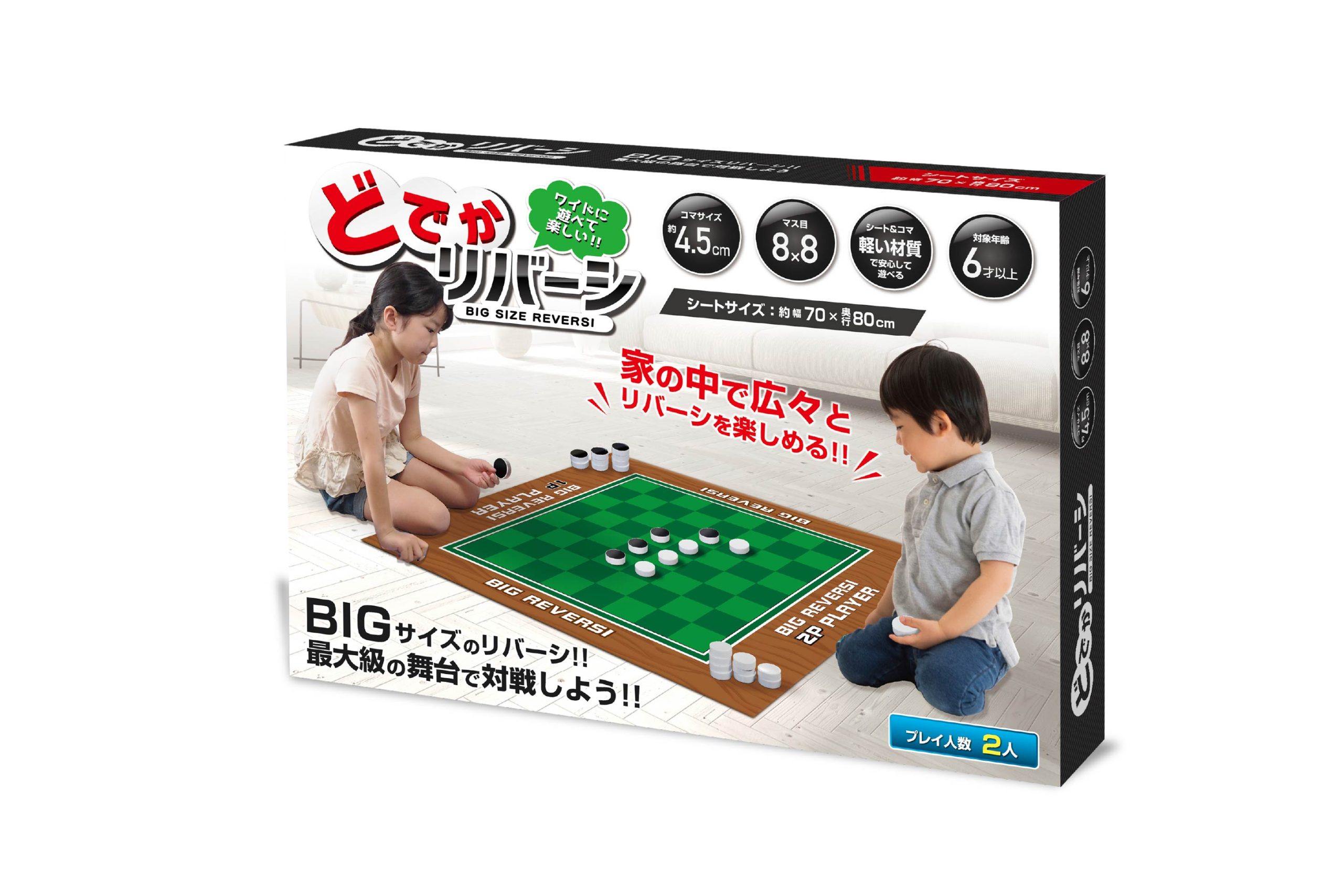ボードゲームの決定版!!昔ながらのリバーシゲームがBIGサイズになって登場!家の中で広々と楽しめる♪広い盤面でコマを置きやすくインパクト大なリバーシ!みんなでワイワイ集まるシーンで大活躍間違いなし!
