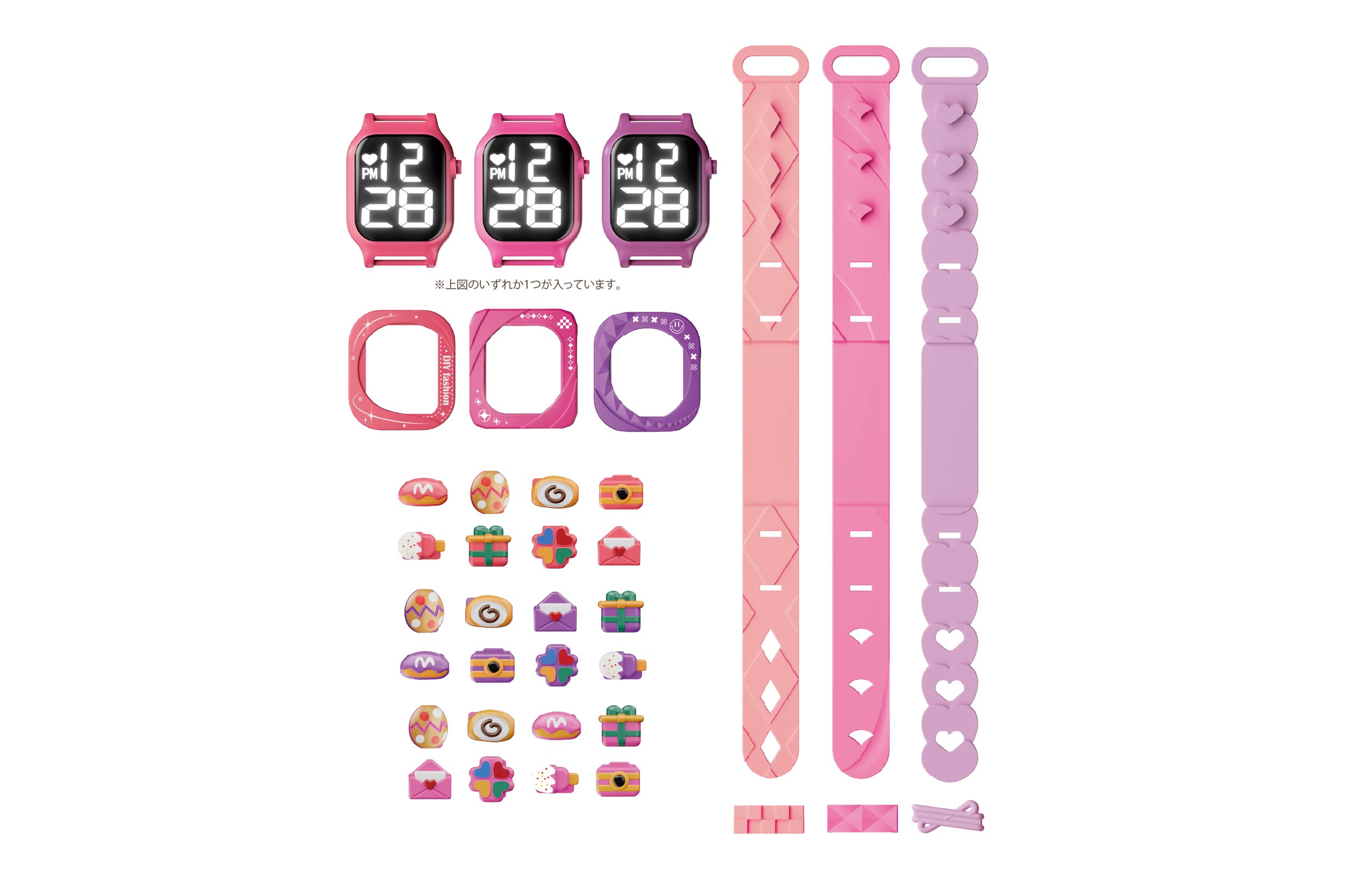 自分だけの“かわいい”を作れる、DIYタイプのデジタルウォッチ。パーツを自由に組み合わせて、ウォッチとブレスレット2WAYで楽しめるガーリーなアイテムです。アクセサリー感覚で身につけられ、毎日のコーデのワンポイントにもぴったり。