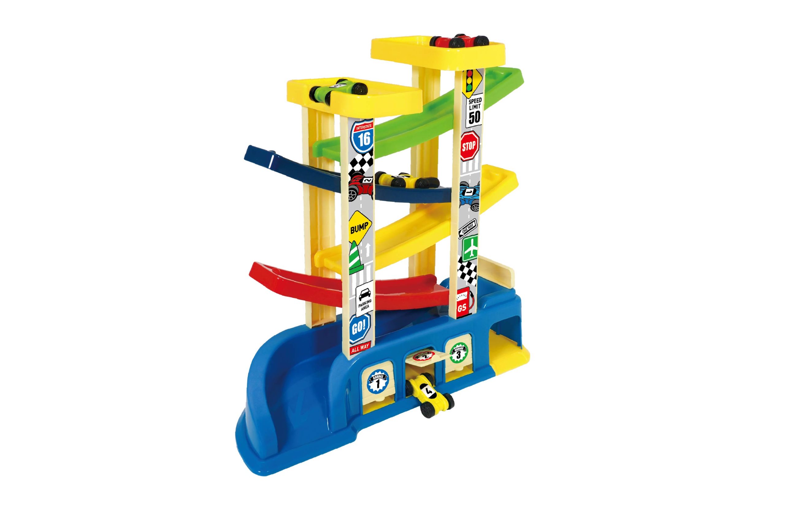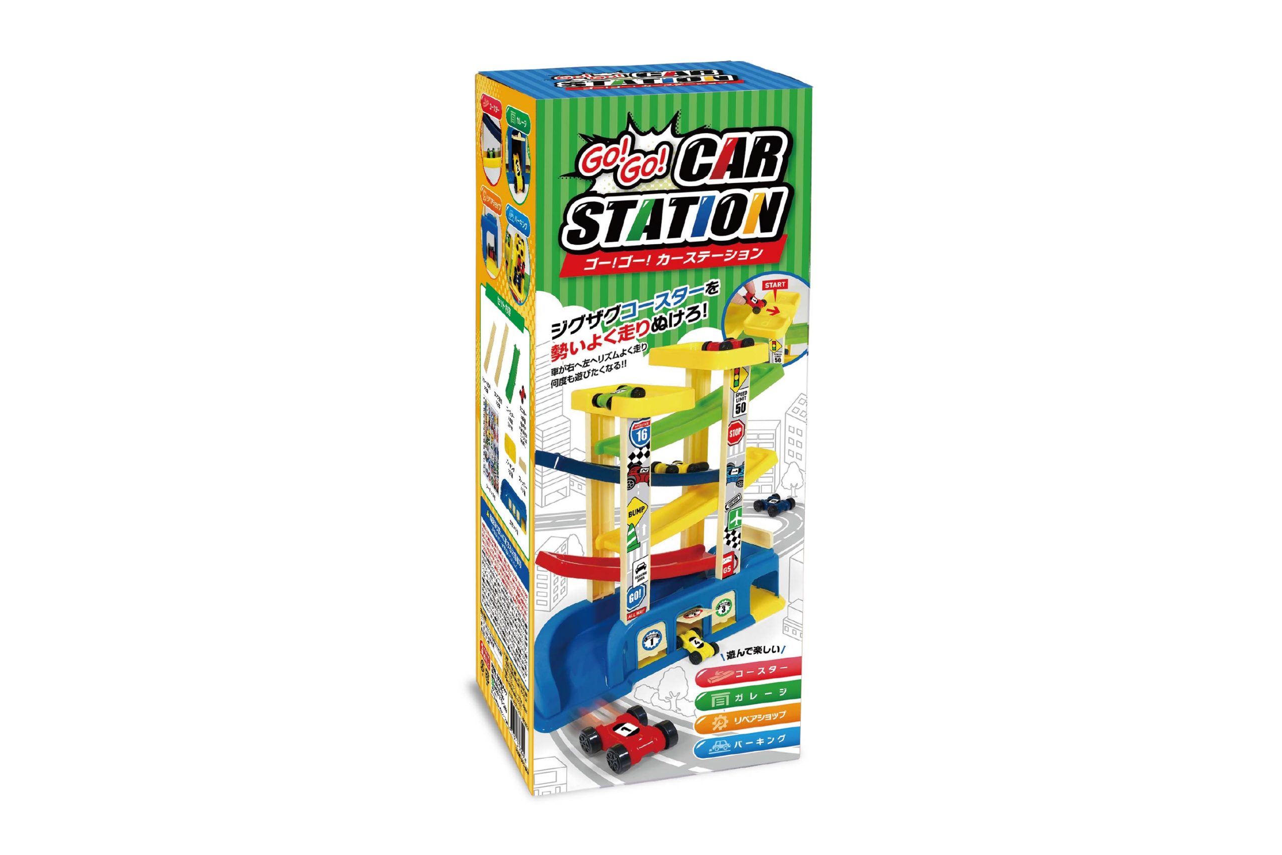 ジグザグコースターを勢いよく走り抜けろ!カラフルコースターでワクワク楽しいカーステーション♪車が右へ!左へ!リズムよく走るから何度も遊びたくなる☆6台のミニカーでジグザグコースターをビューンと突っ走れ!