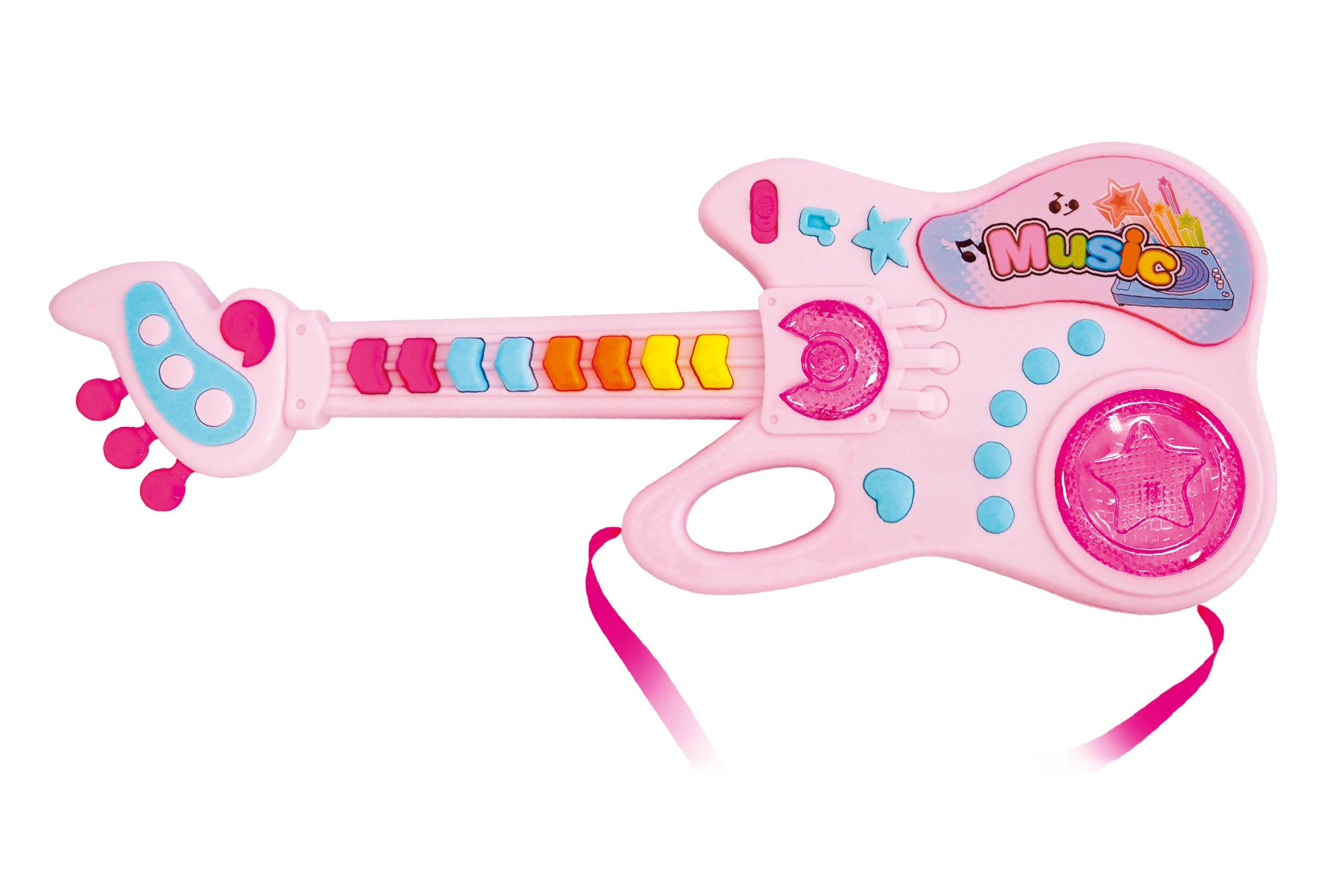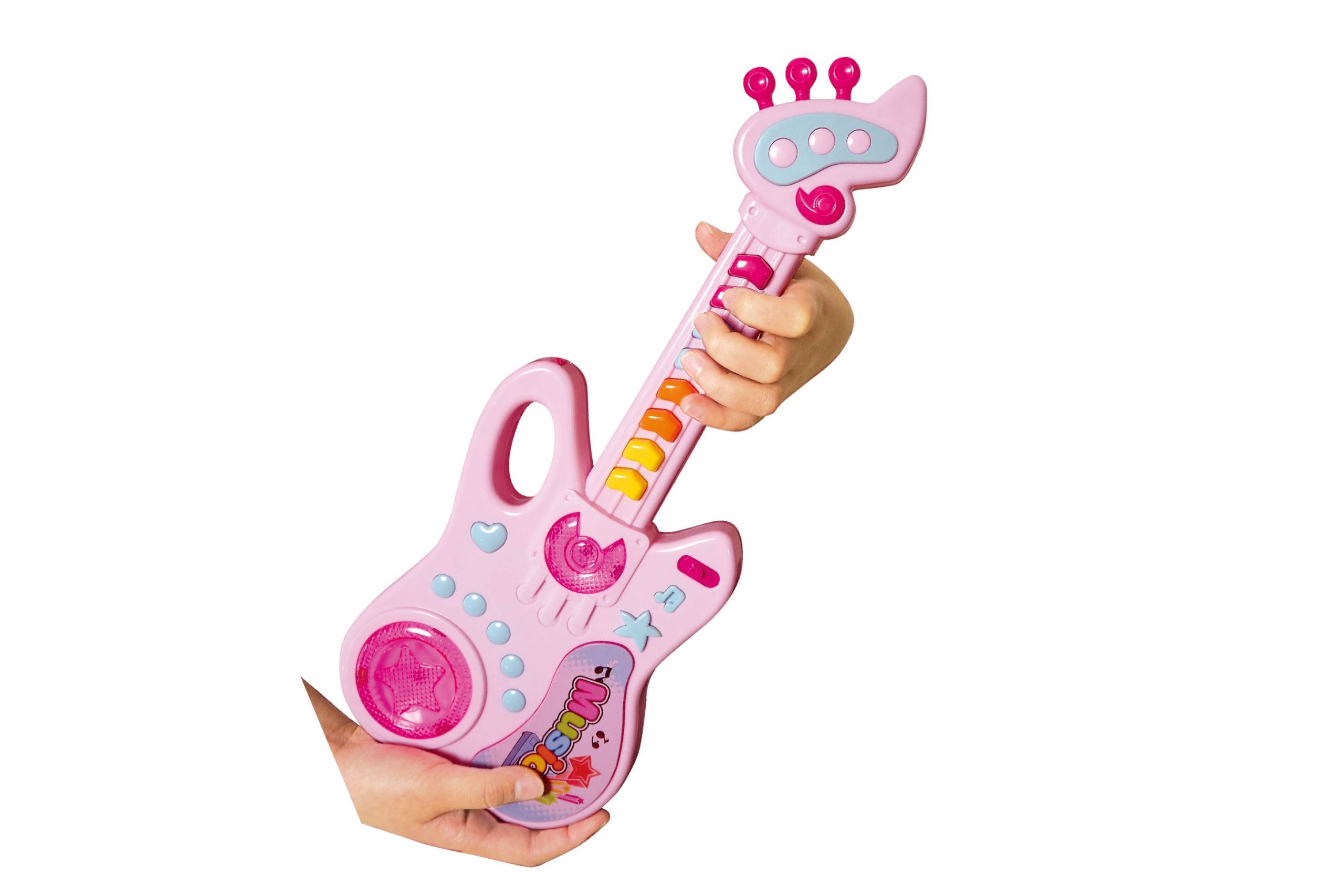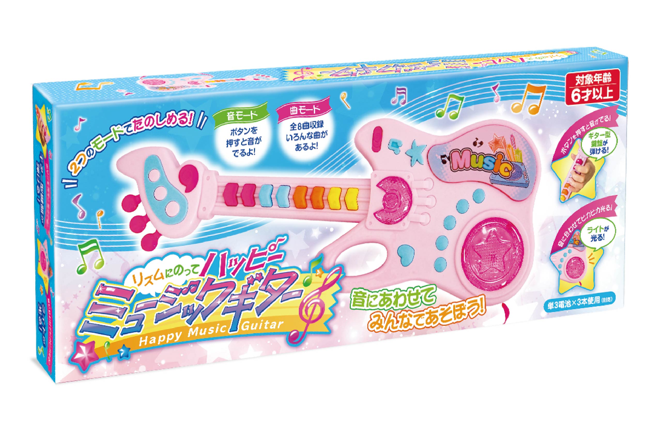 音に合わせてみんなであそぼう♪ギター型の鍵盤で、ボタンを押すと音が出る!さらに音に合わせて、ライトがピカピカ光るので、スター気分を味わえます♪全8曲収録されているので、色々な曲を楽しめる!ハッピーミュージックギターでみんなの視線を集めちゃおう☆