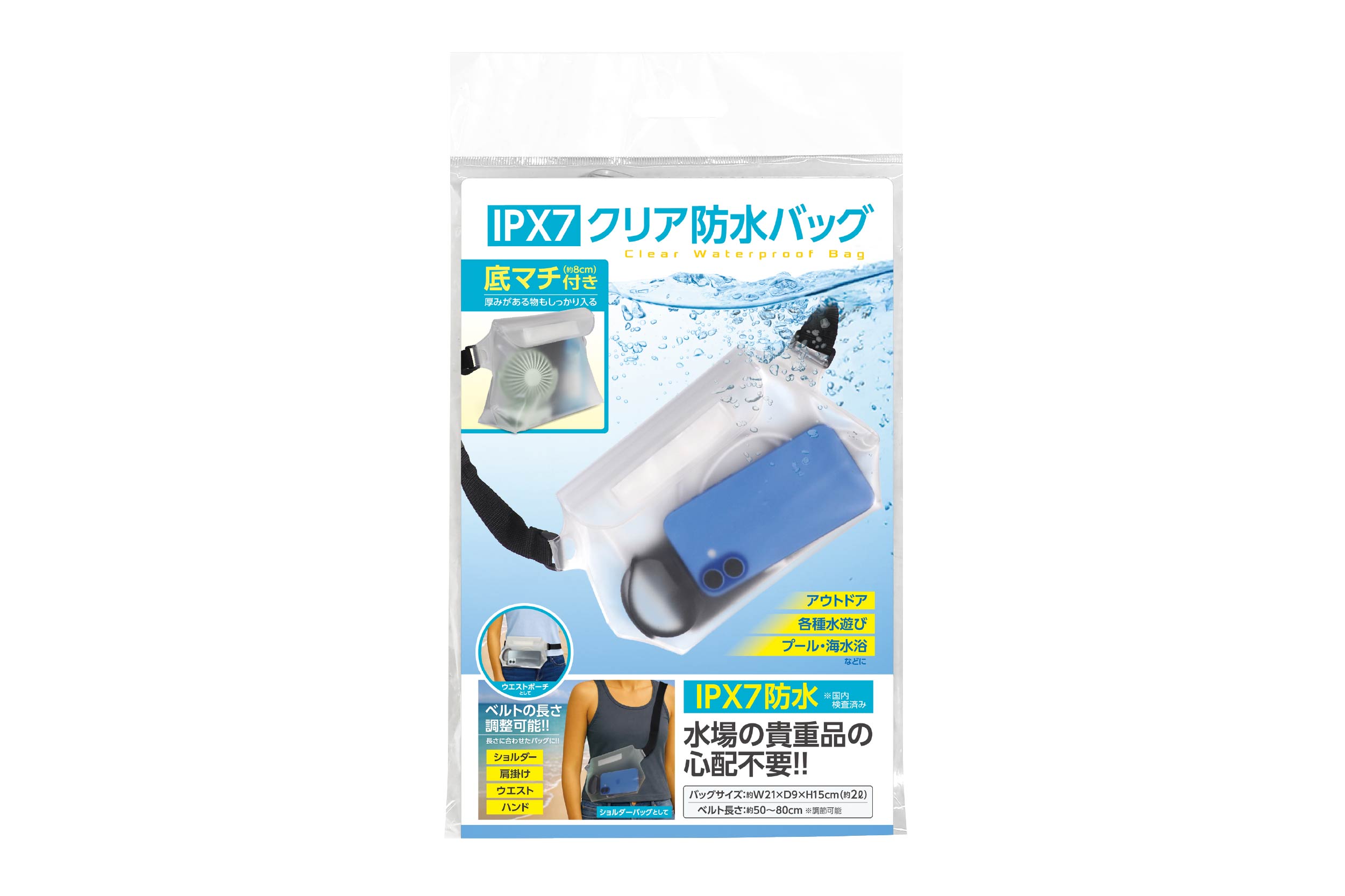 水辺レジャーも突然の雨もこれ一つで安心。水場の貴重品の心配不要!IPX7防水規格対応で、大切な荷物をしっかりガード。中身が見えるクリアタイプで使いやすさも抜群です。底マチ付きで厚みのある物もしっかり入ります。