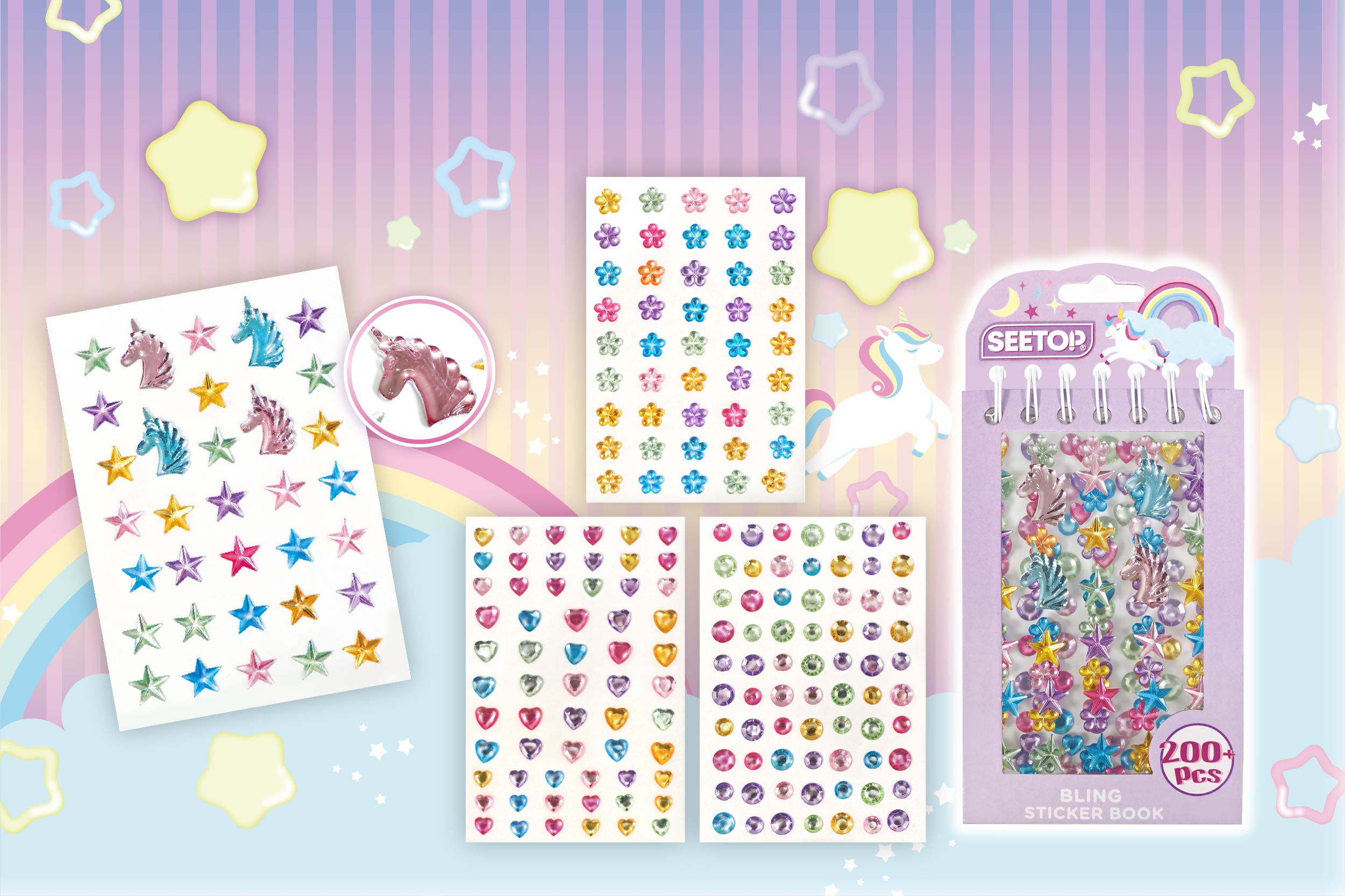 きらめく、ゆめかわシール♪立体感がとってもかわいい!キラキラのユニコーンやハートなどたっぷり入って200P!好きなところに貼ってデコろう!