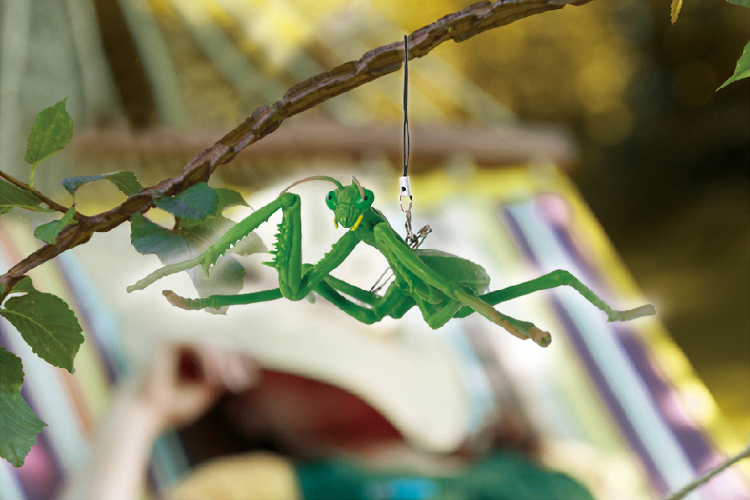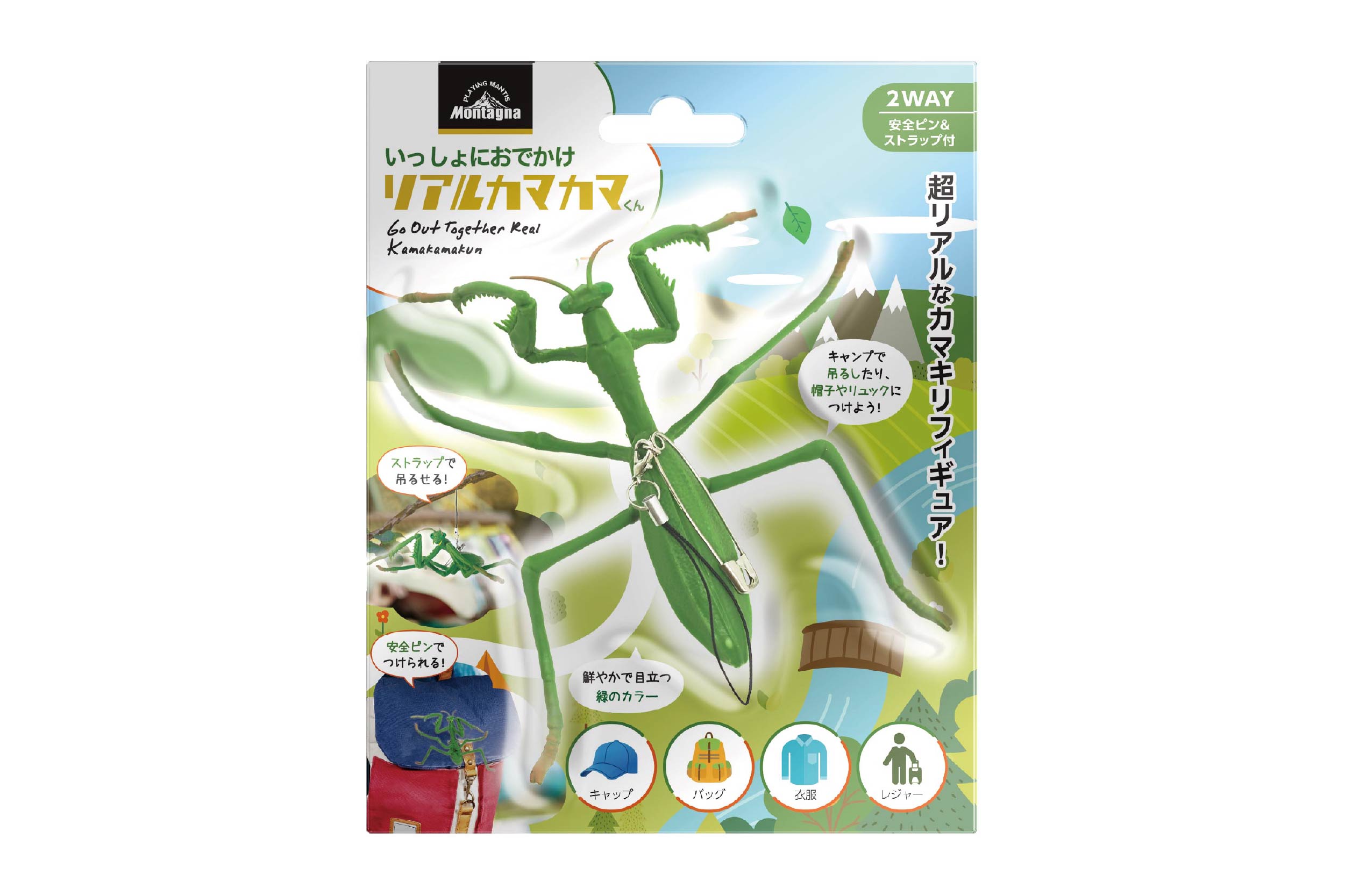実物サイズ感の超リアルなカマキリフィギュア。鮮やかで目立つフレッシュなグリーンカラーで存在感が抜群!安全ピンで衣服や帽子に取り付けたりストラップで吊るせて、キャンプや登山など野外シーンにピッタリ♪その他、釣りやガーデニングなど多用途なシーンに使えて便利。カマカマくんを持って出かけよう!