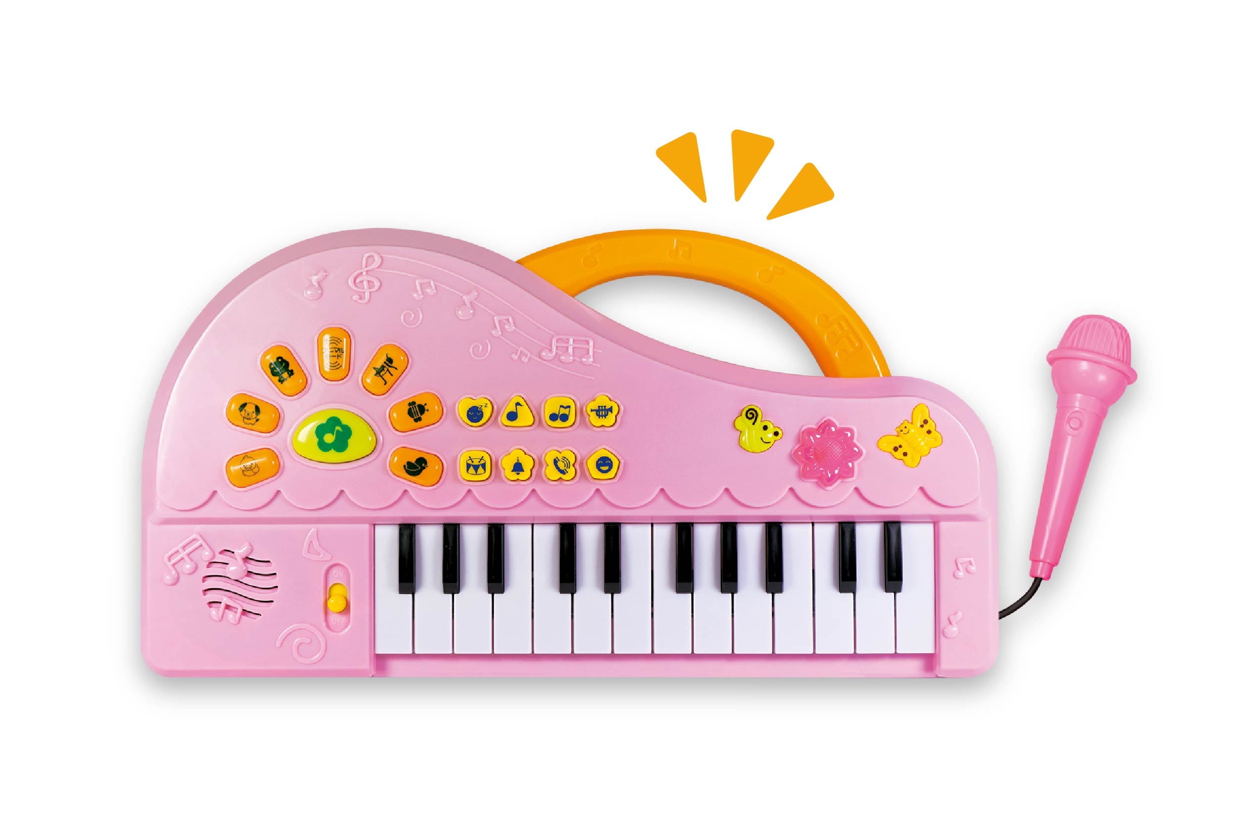 歌って♪弾いて♪楽しい機能がいっぱいのマイク付きピアノ。マイクで歌うとスピーカーから流れて、歌うのがとっても楽しくなる♪その他、チャイム音やコール音も搭載。アニマルモードではわんちゃんやアヒルなど、たくさんの動物の鳴き声が流れるよ♪ランプが光ったり簡単演奏モードがあったり、楽しい機能がたくさんあって楽しめる!!