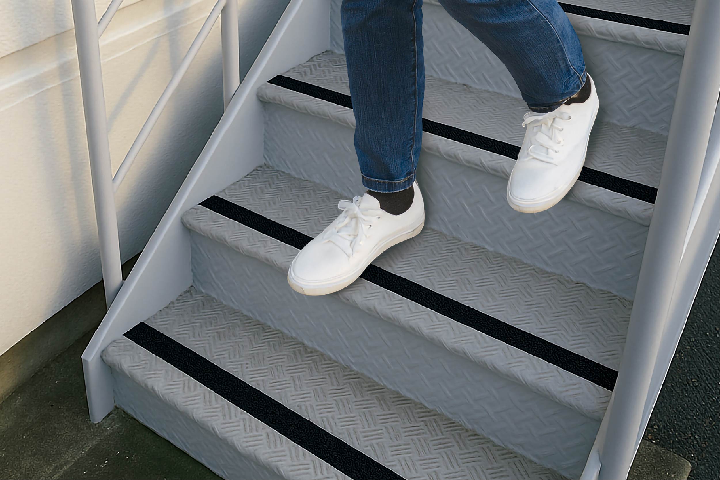 階段や玄関まわりなどに貼るだけで簡単にすべり止め対策ができる安全アイテム。必要な長さにカットして使用可能です。用途の広い「通常タイプ」はコンクリートの地面や脚立のステップに最適!転倒防止と安全確保に便利です。