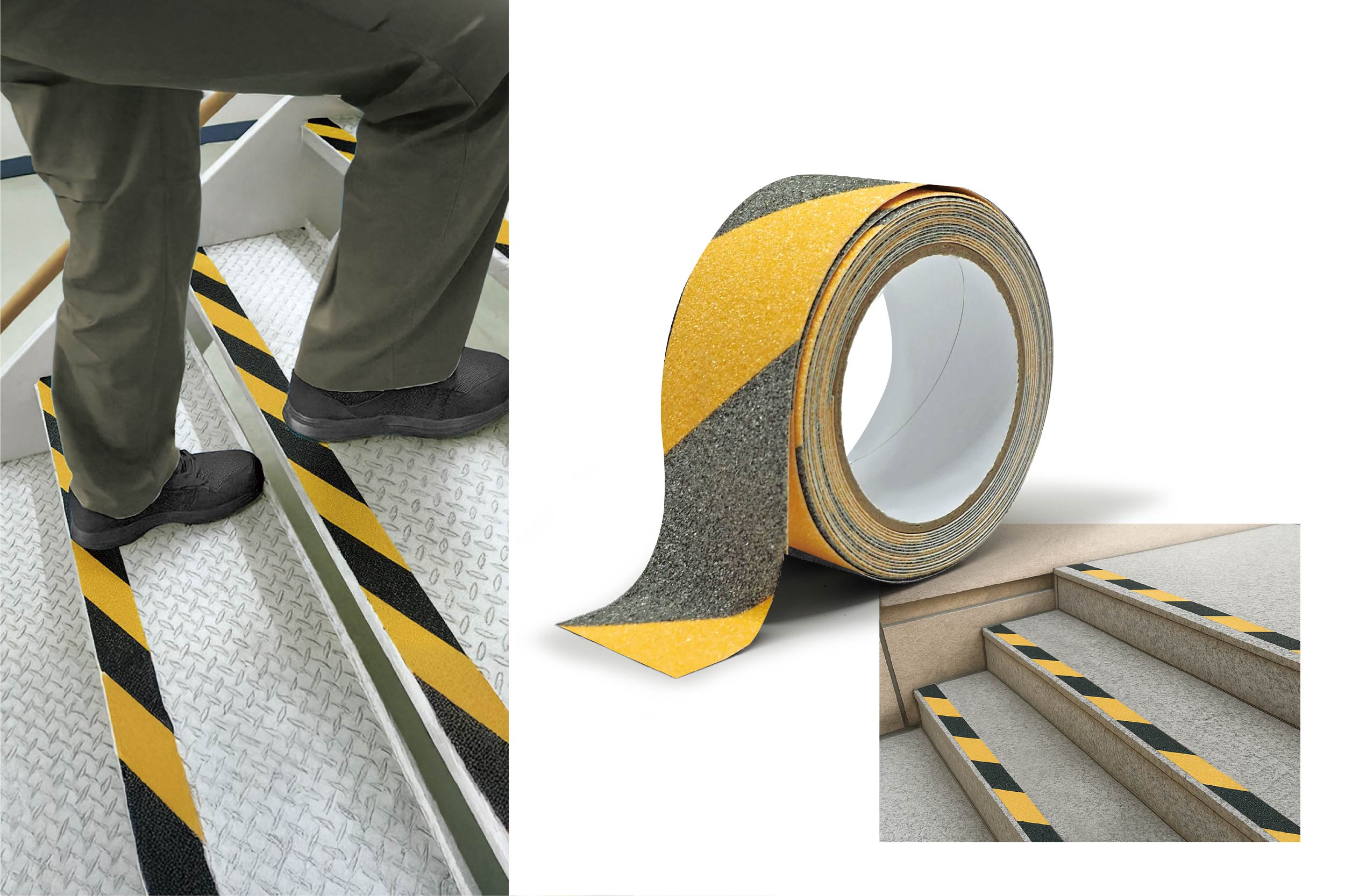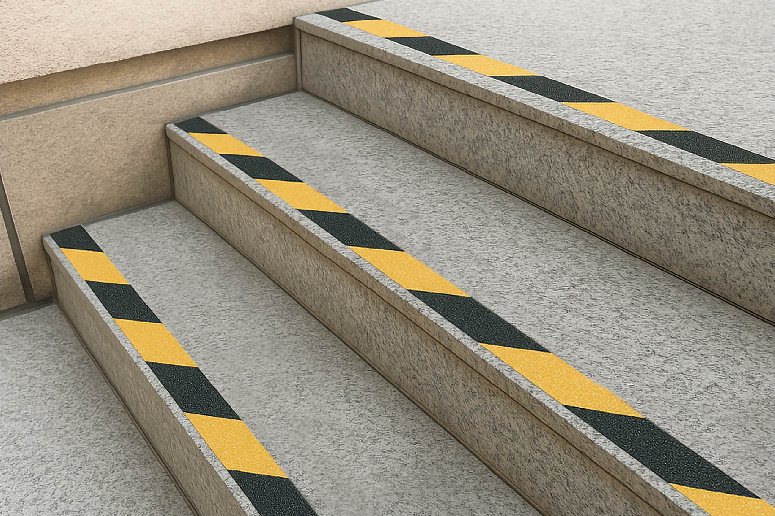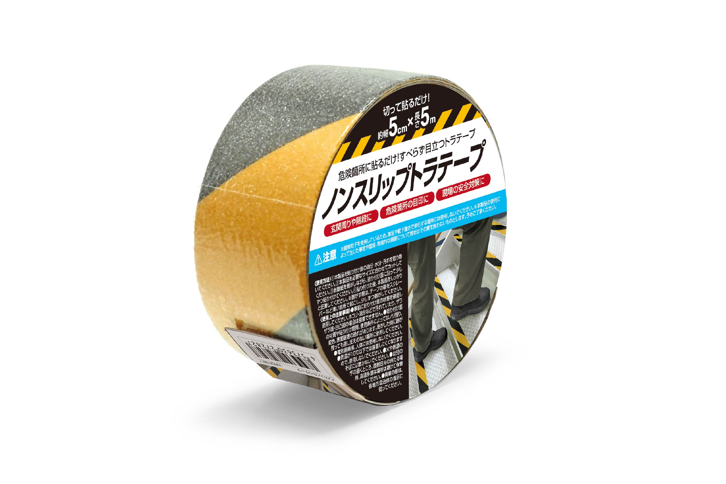 階段や玄関まわりなどに貼るだけで簡単にすべり止め対策ができる安全アイテム。必要な長さにカットして使用可能です。危険個所におすすめの「トラテープ」は危険箇所の目印や現場の安全対策に便利です。