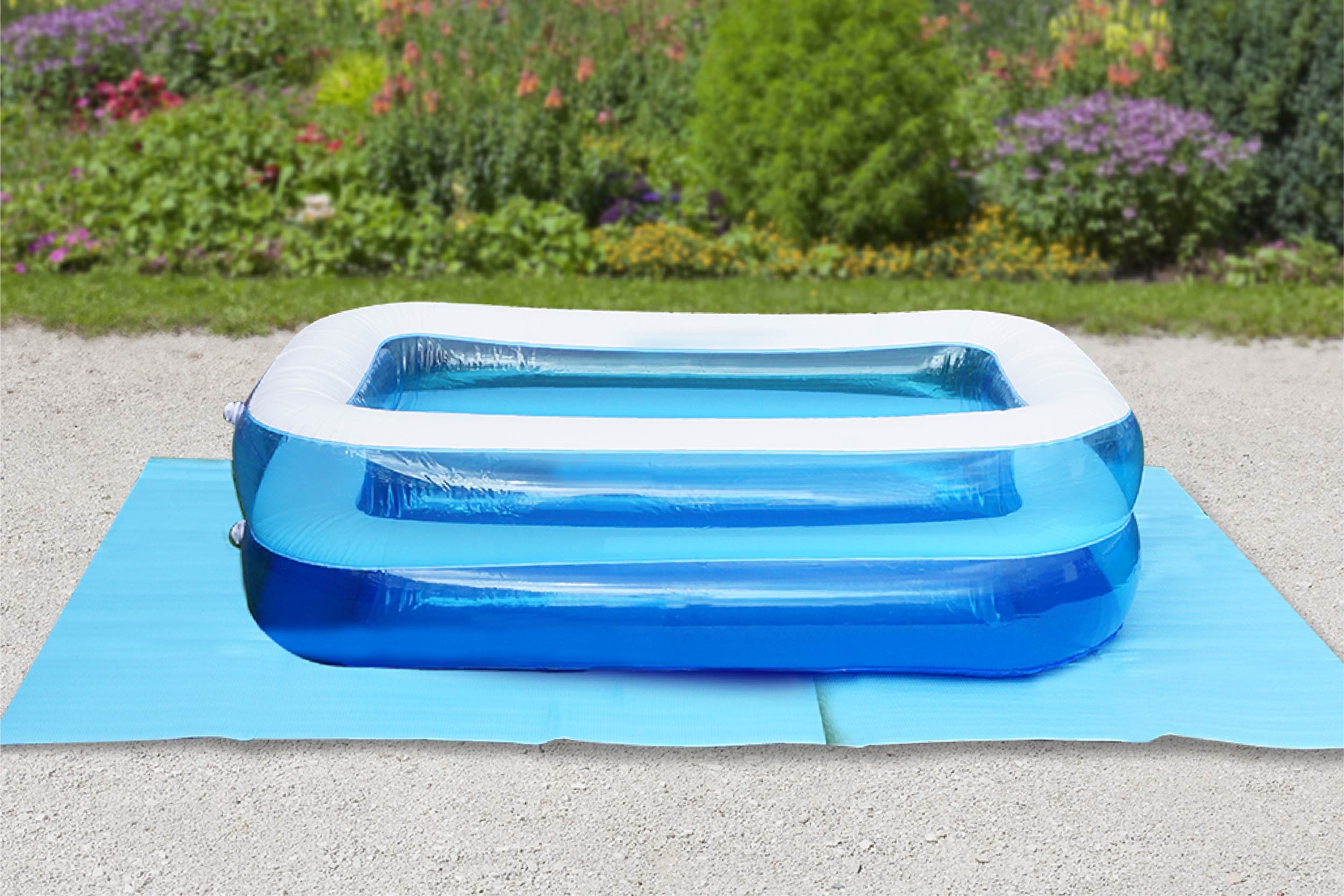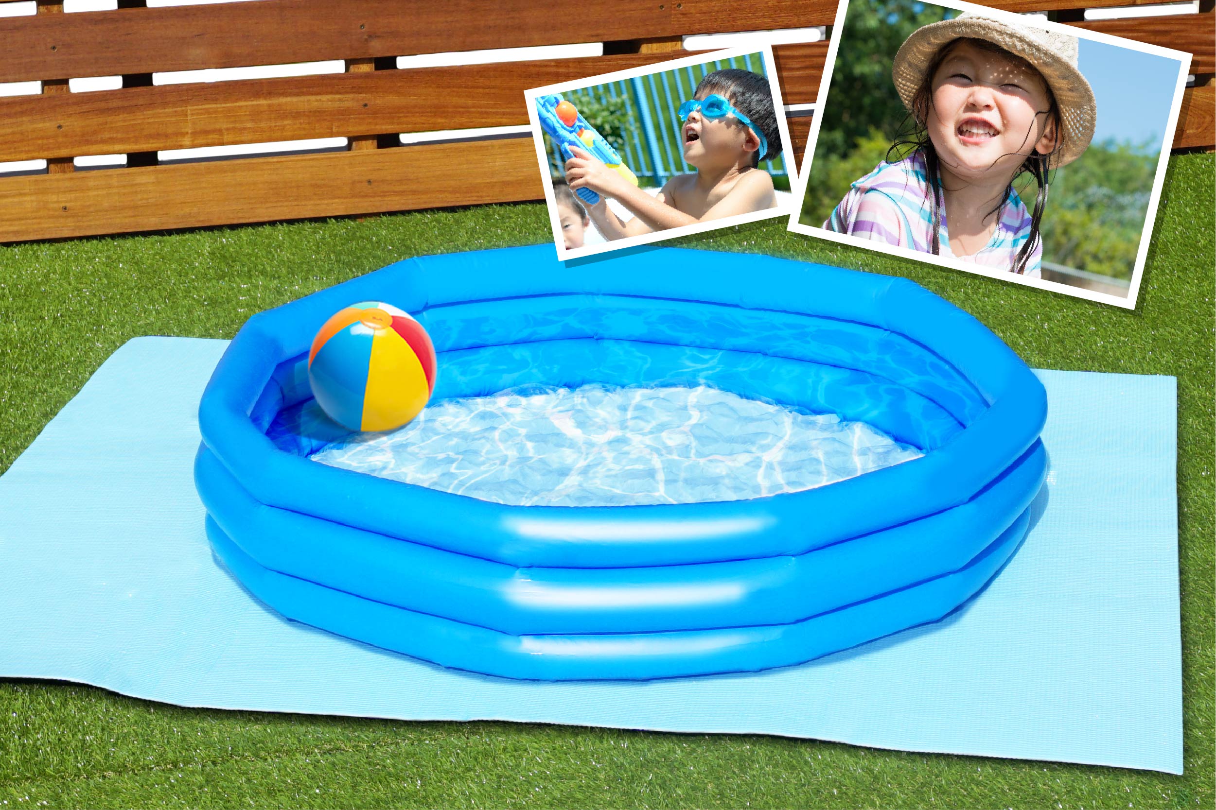 プールの下に敷いて地面や砂利の凹凸感を軽減。またプールの底面を設置面から保護して穴あき防止にも♪プールの周りに複数枚置くことで裸足で歩ける場所を確保、小さなお子さんも安心して楽しめます。庭先や玄関にプールを置いて暑い夏を遊びつくそう!