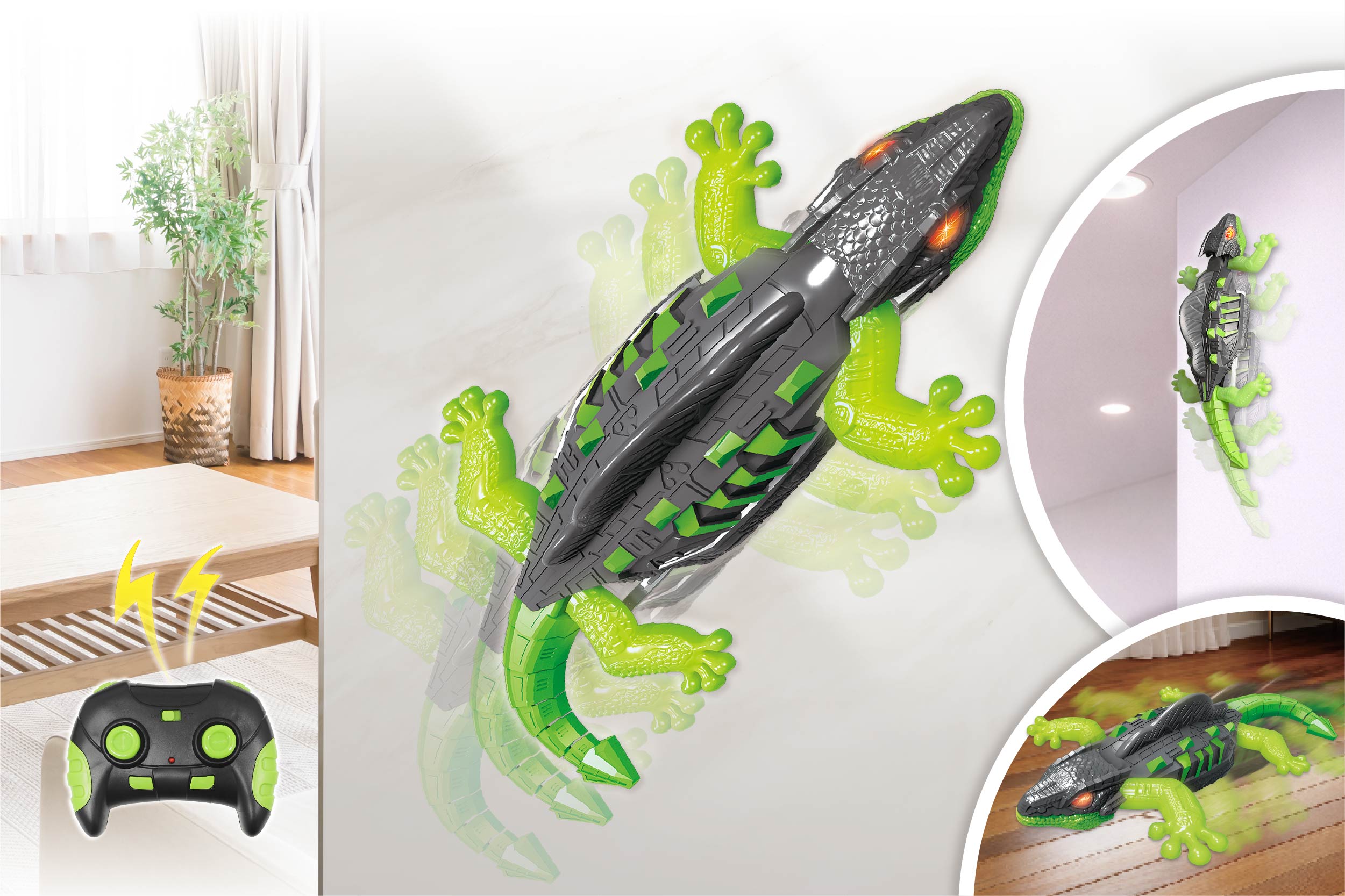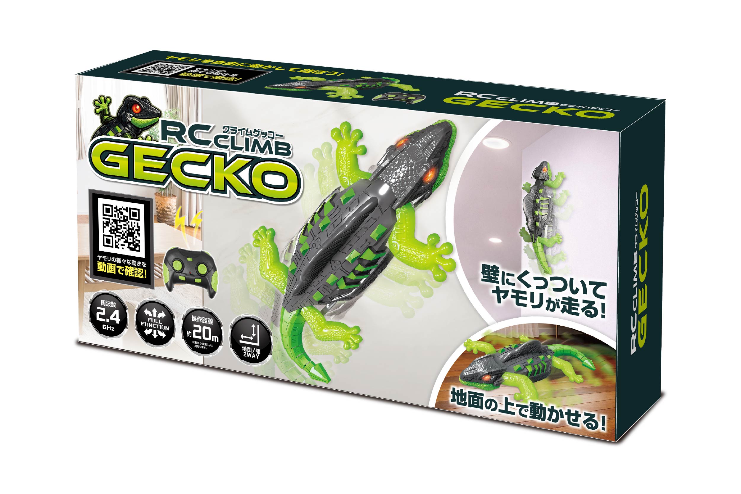 壁も床も自由自在に走る!RCクライムゲッコー♪2.4GHz操作で約20mの遠隔操作が可能なラジコンヤモリ。壁に吸着してリアルな動きを楽しめるのが魅力!グレー×グリーンのクールなデザインで見た目もインパクト抜群。・壁/床2WAY走行・フルファンクション操作・軽量ボディで扱いやすい・リアルなライト演出。お部屋遊びやプレゼントにもぴったり!
