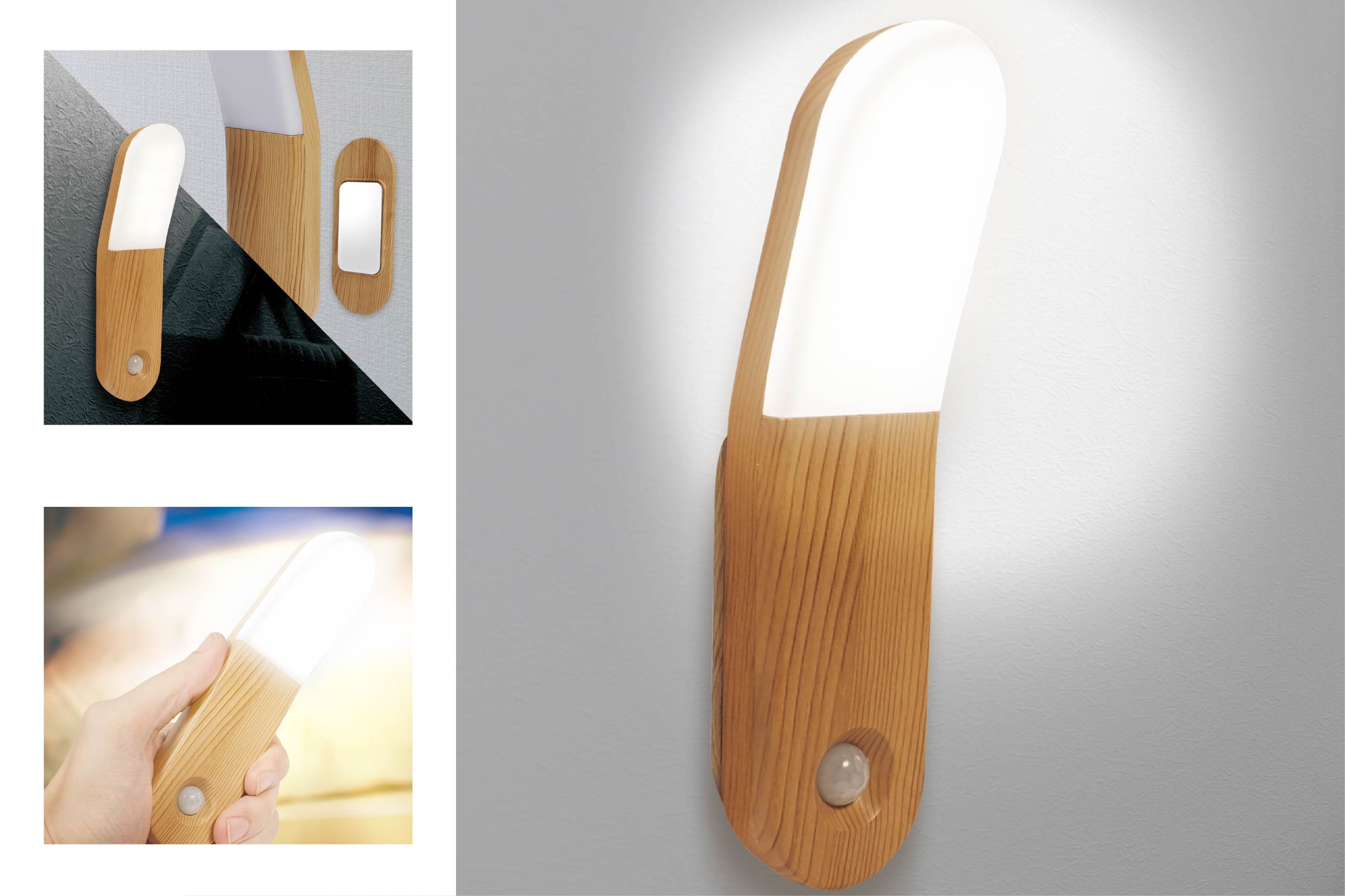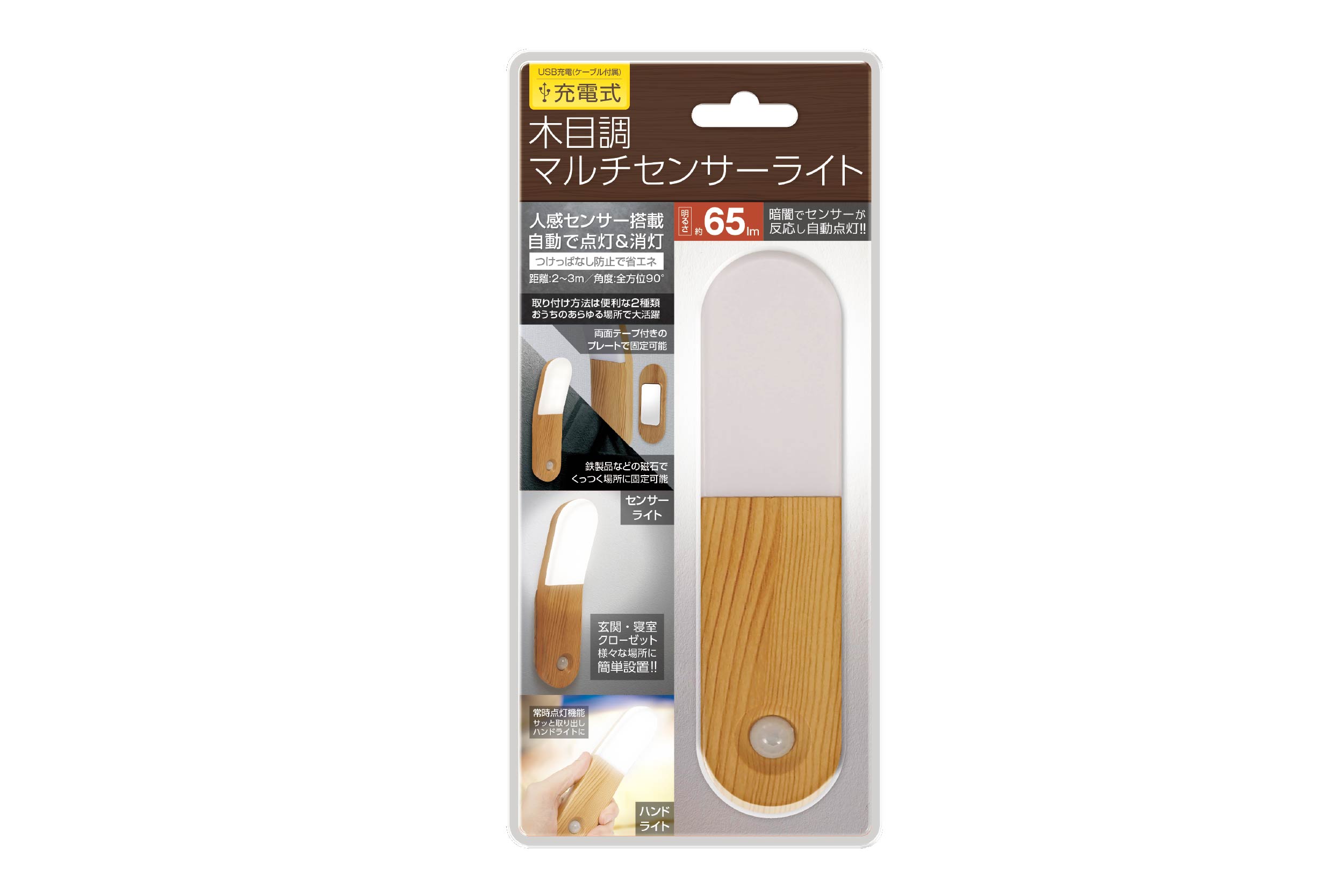 暗闇でセンサーが反応して、パッと自動点灯する、センサーライトが登場!人感センサー搭載で自動点灯&消灯可能。ハンドライトとしても使え、付属の両面テープで固定することも可能。防犯・防災対策におすすめ。