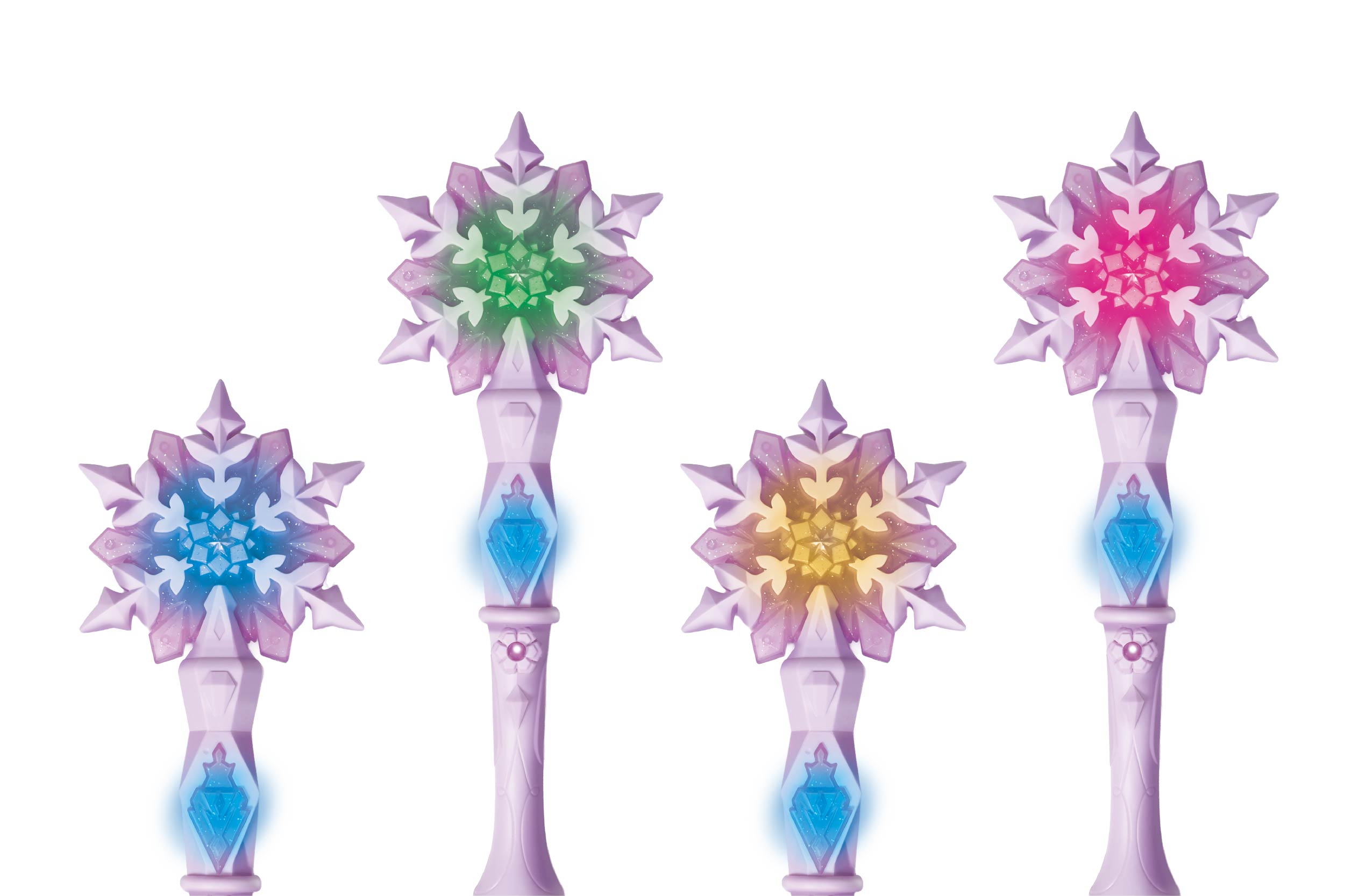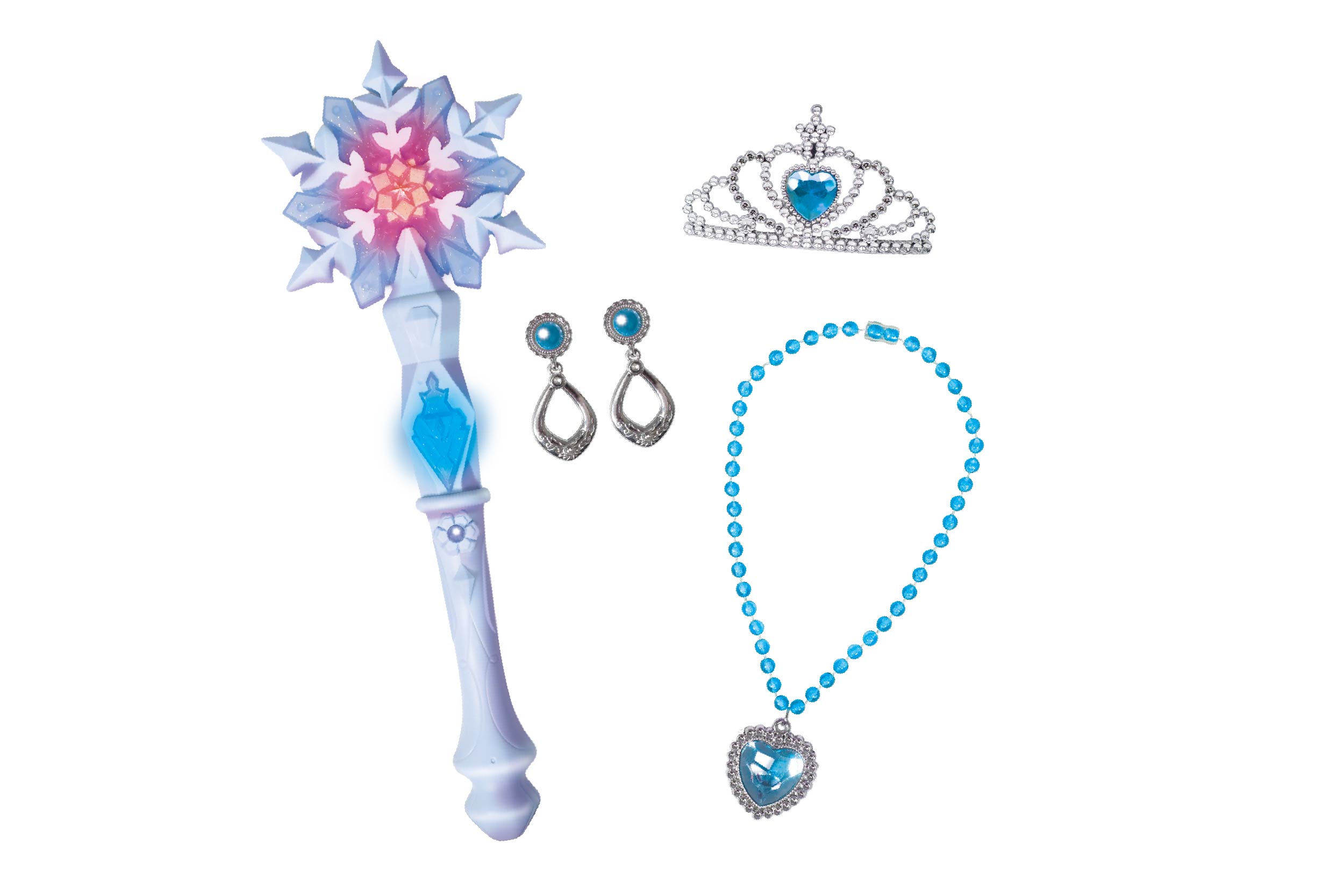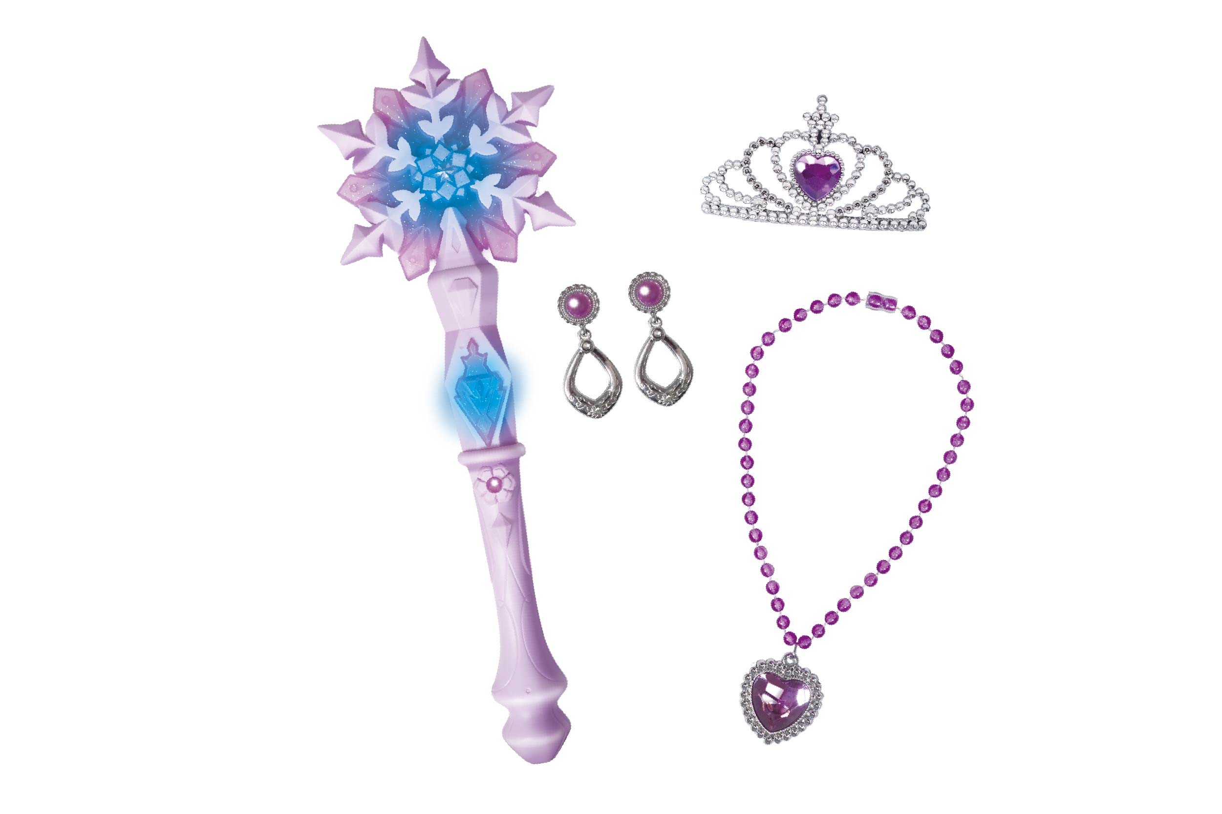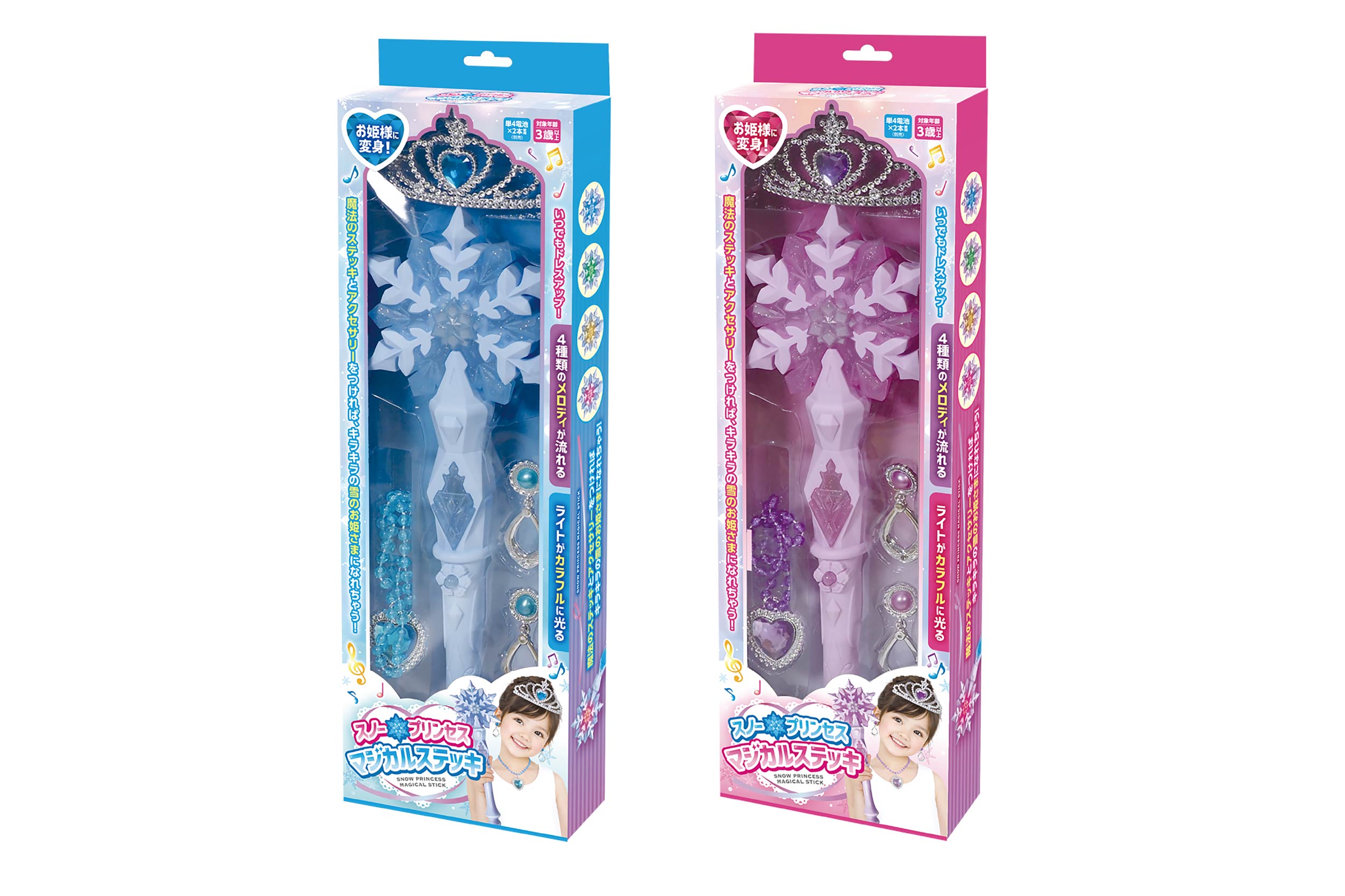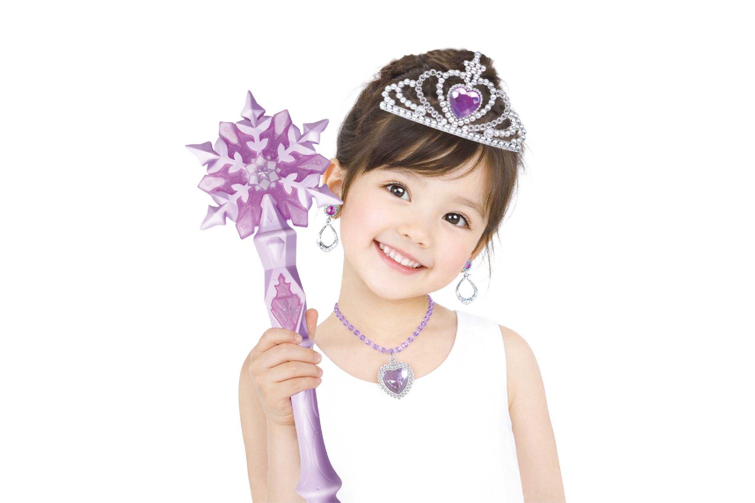キラキラ輝くお姫様気分に♪スノープリンセスマジカルステッキはステッキとアクセサリーがセットになったなりきり玩具です。振るだけでメロディとライトが楽しめて遊びが広がる!雪の結晶モチーフが可愛いデザインで、カラーは「ブルー・ピンク」の2種展開。ライト発光・4種メロディ・アクセ付き!おうち遊びやお出かけ先でもプリンセス気分を楽しもう!