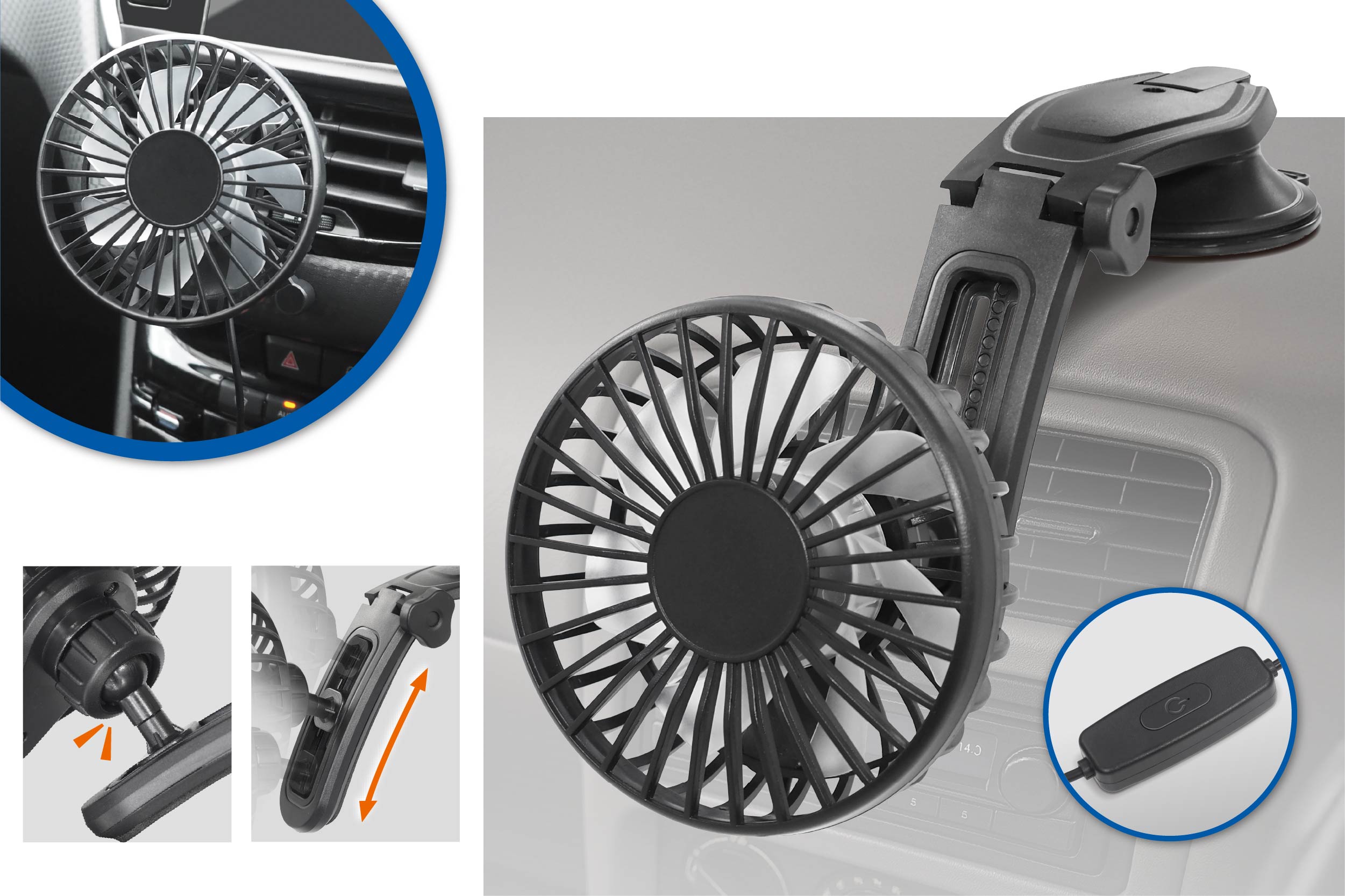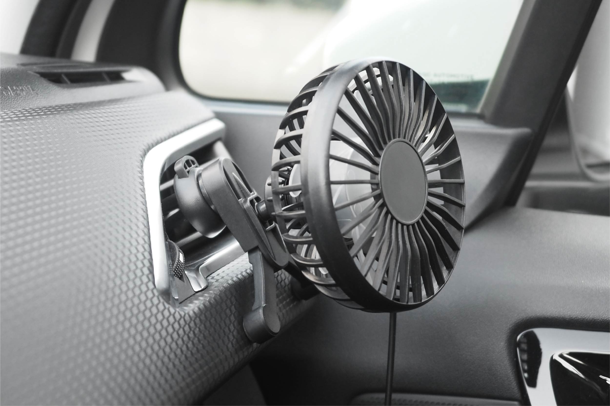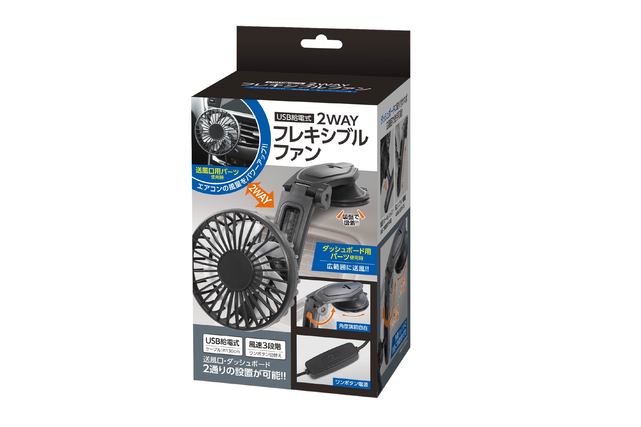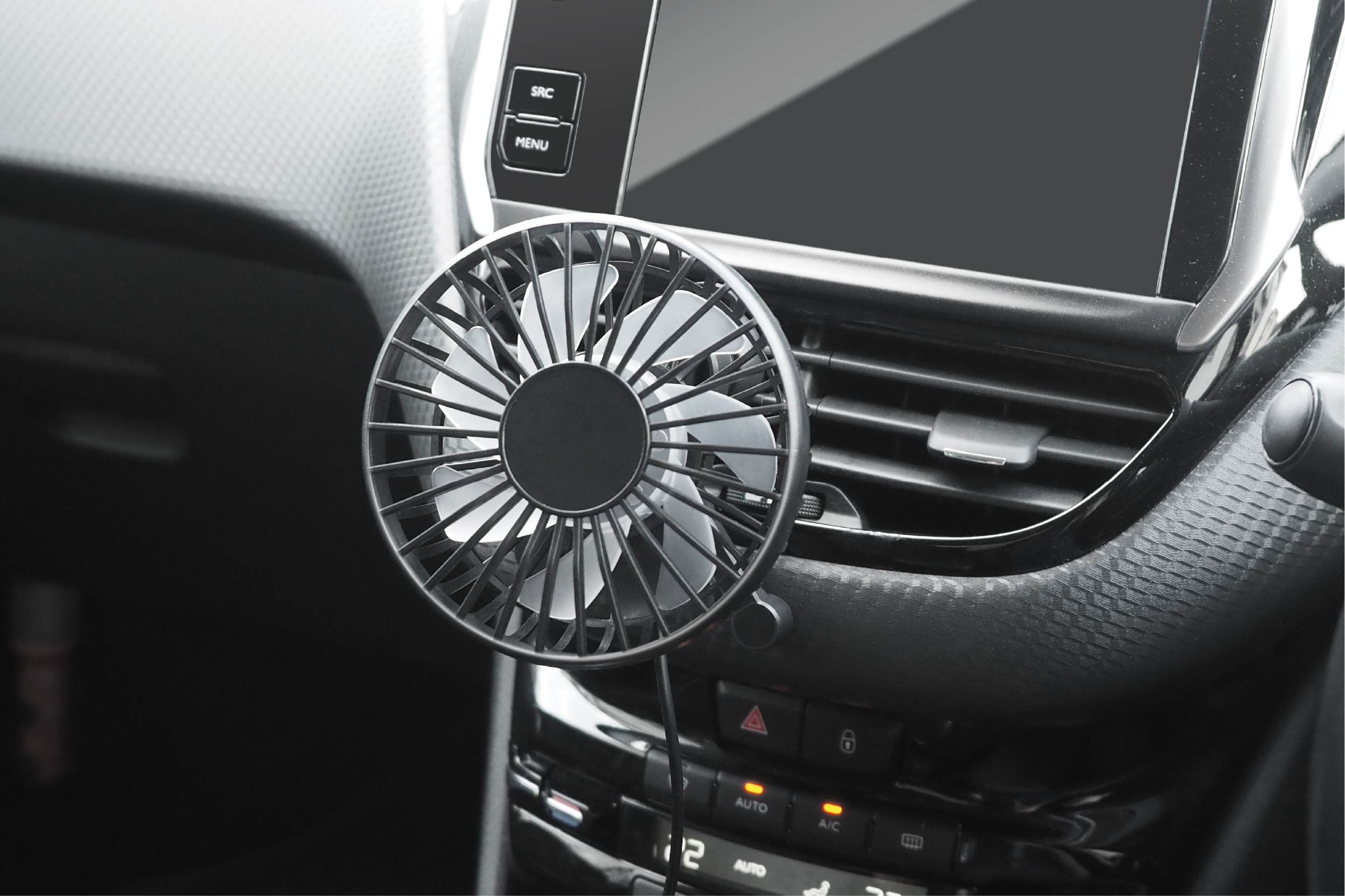 USB給電で車内でも手軽に使えるコンパクトファン。ダッシュボード用と送風口用のパーツがあり、各場所に設置可能!エアコンの風量をパワーアップ!ボールジョイントで角度調整も自由自在、車内を快適に保ちます。