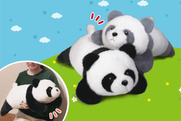 ふわふわ&もふもふの触り心地がたまらない、ねそべり姿がかわいいパンダのぬいぐるみです。全長約60cmのビッグサイズで、抱き心地も抜...