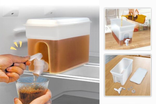 レバーをひねるだけで冷蔵庫から直接ドリンクが注げる!たっぷり容量の約3Lだから、夏場に麦茶を大量に作っても大丈夫です。容器が半透明...