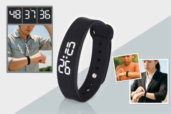 ワンボタンで時計と温度を切り替え表示!高温時はバイブで素早くお知らせします。アプリ不要で簡単に操作できるので、猛暑の危険に気付きず...